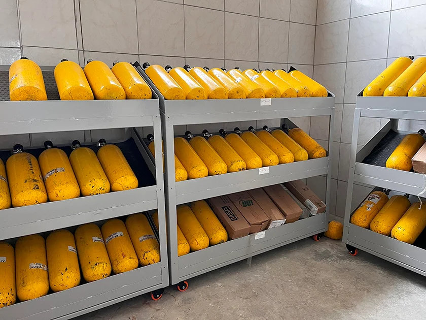 O ar respirável atende às normas de pureza da ABNT e NR-33, garantindo que esteja livre de contaminantes como monóxido de carbono e óleo.